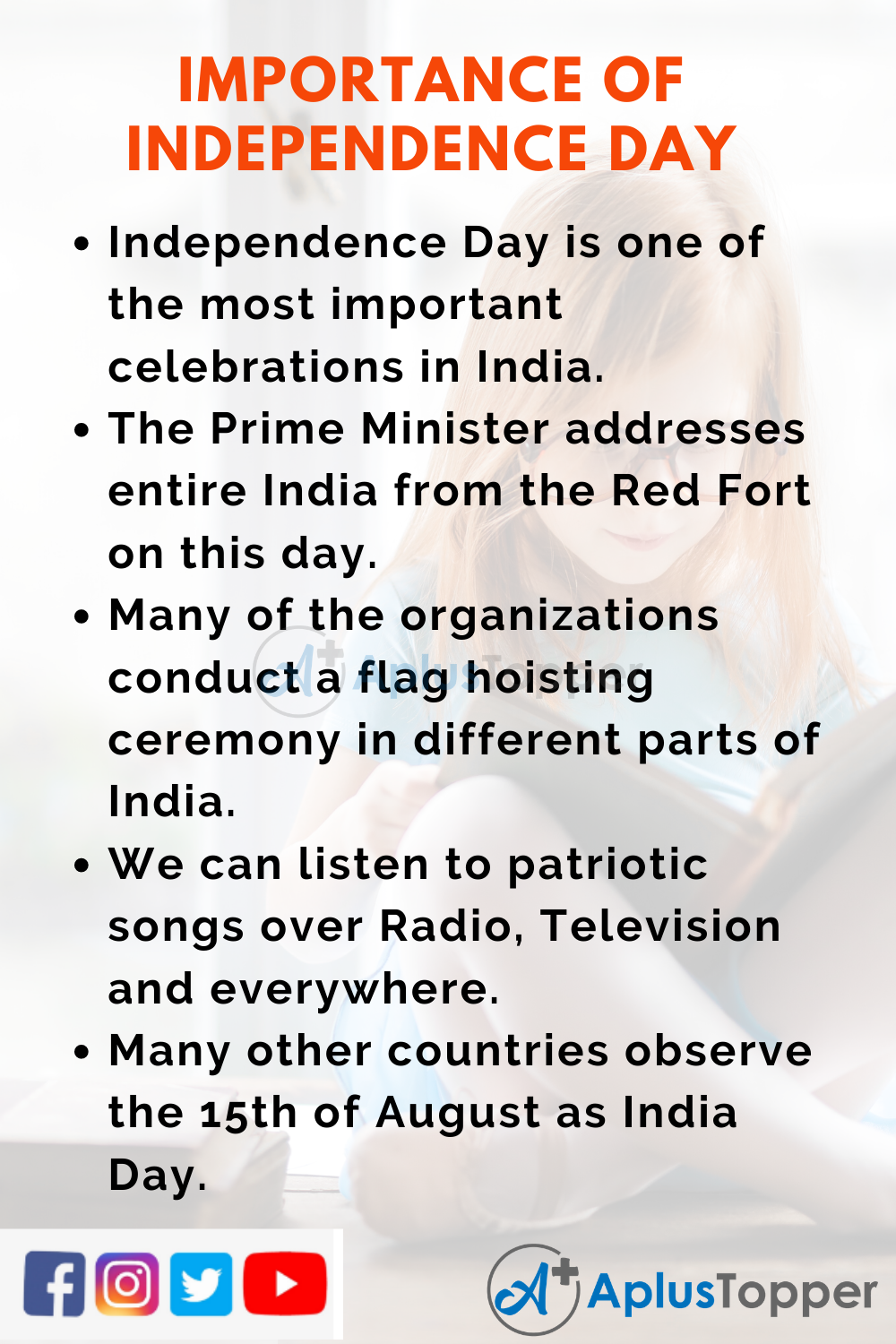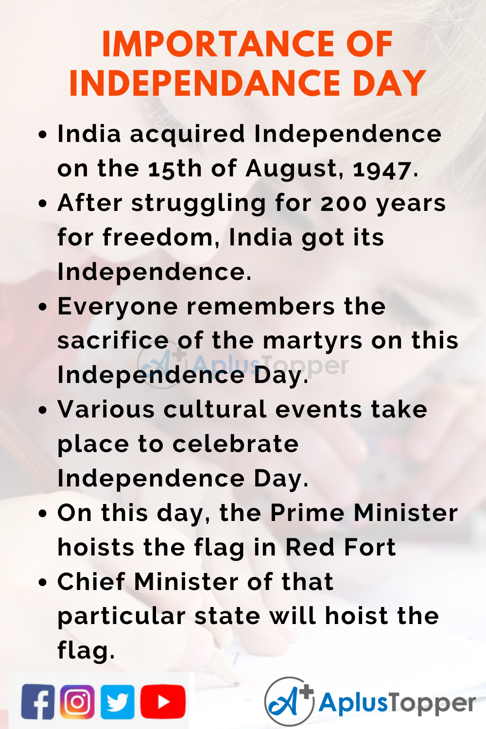 Set 3 – 10 Lines on Importance Of Independence Day in English