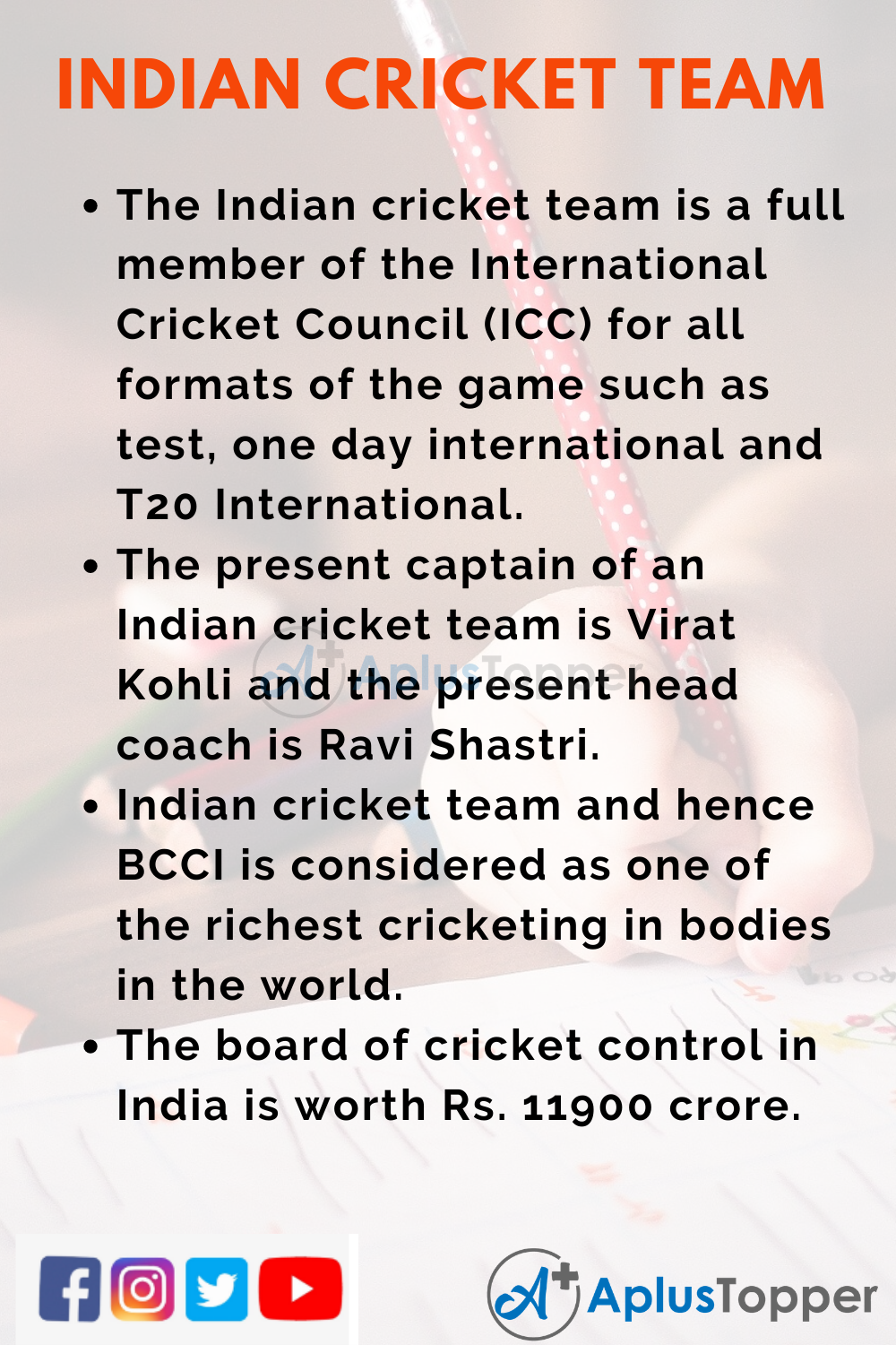 Set 2 – 10 Lines on Indian Cricket Team for School Children
