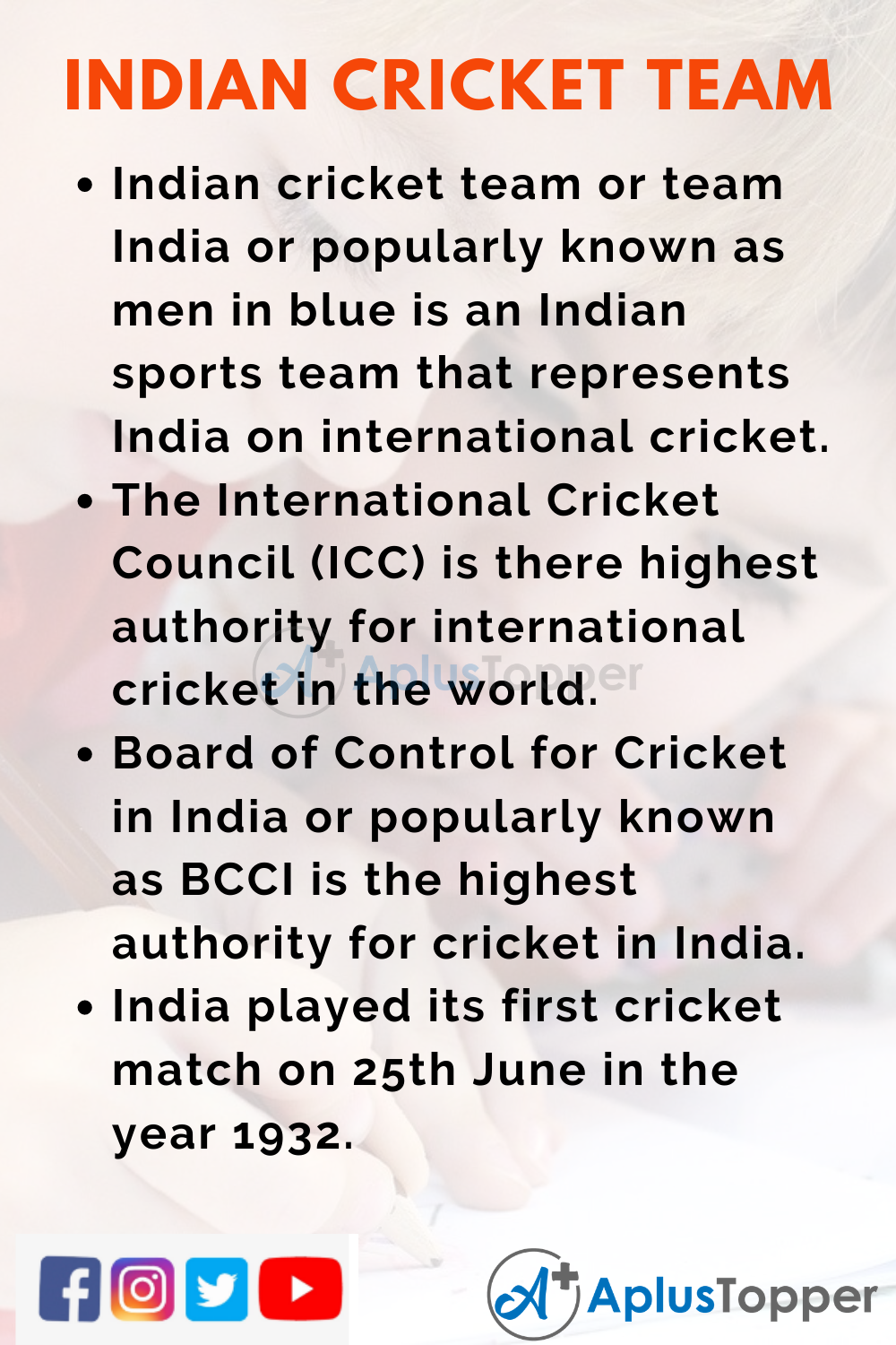 Set 1 – 10 Lines on Indian Cricket Team for Kids