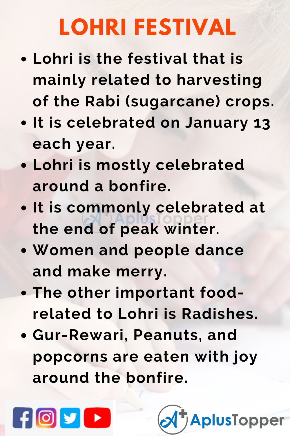 Set 3 – 10 Lines on Lohri Festival for Higher Class Students