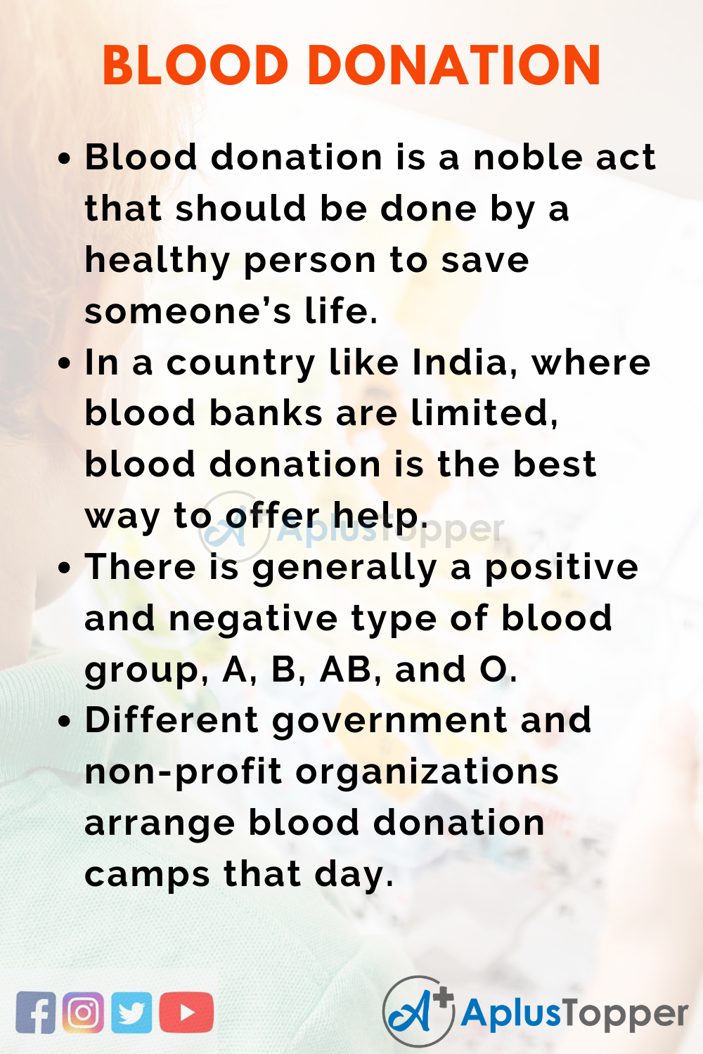 Set 3 – 10 Lines On National Voluntary Blood Donation Day for Higher Class Students