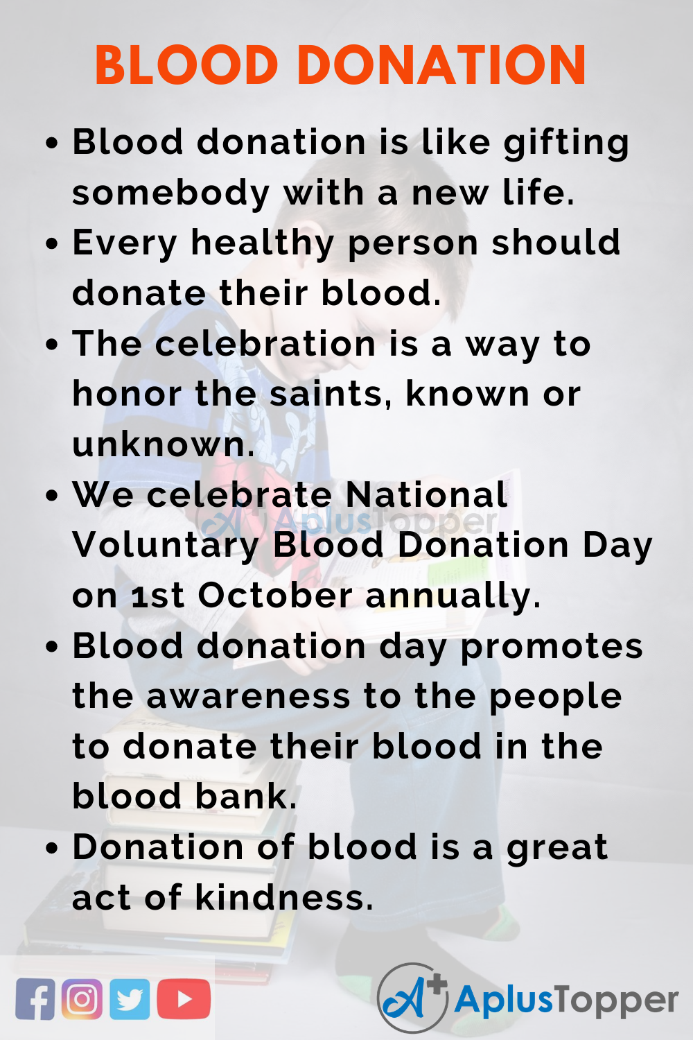 Set 1 – 10 Lines On National Voluntary Blood Donation Day for Kids