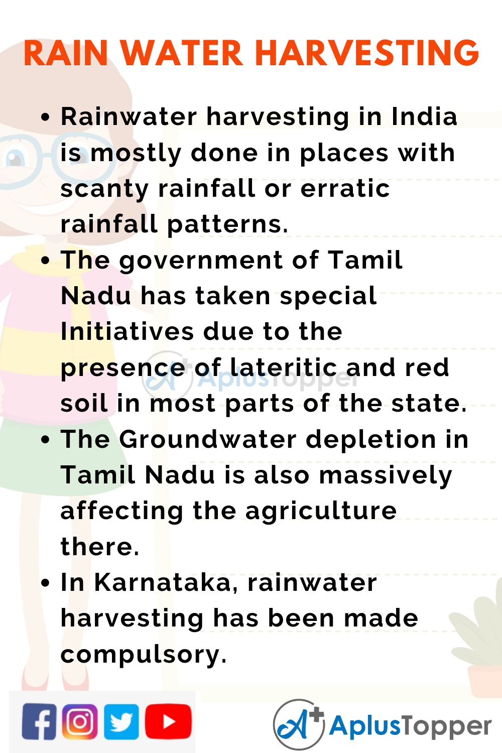 Set 3 – 10 Lines on Rainwater Harvesting for Higher Class Students