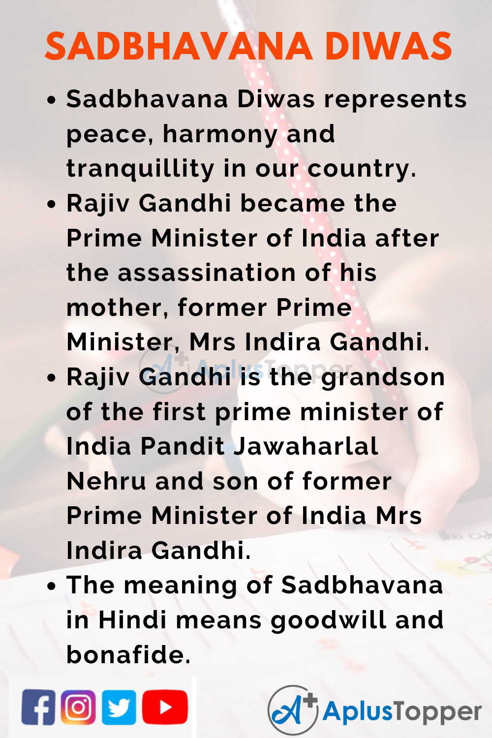 - Sadbhavana Diwas represents peace, harmony and tranquillity in our country.
