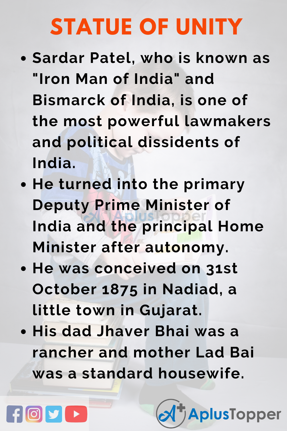 - The Statue of Unity is the sculpture of Iron Man of India ‘Sardar Vallabhbhai Patel’.