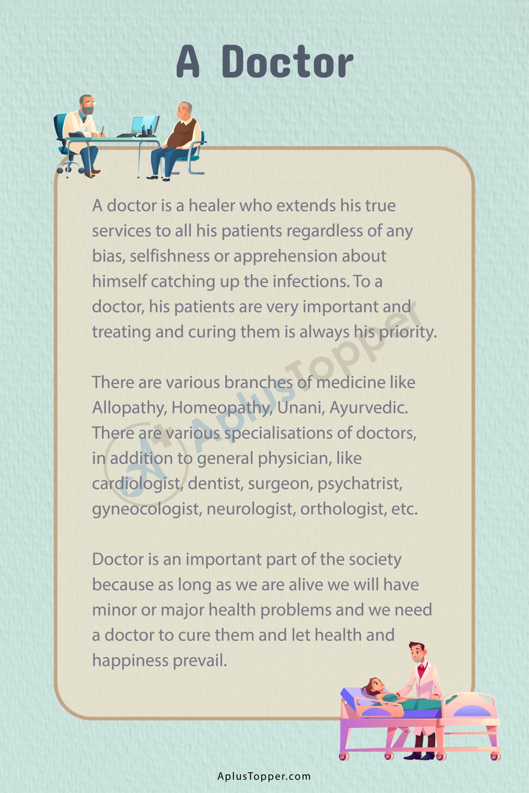 A Doctor Essay – Given below is a Long and Short Essay on A Doctor for aspirants of competitive exams, kids and students belonging to classes 1, 2, 3, 4, 5 6, 7, 8, 9, and 10. A Doctor essay 100, 150, 200, 250 words in English helps the students with their class assignments, comprehension tasks, and even for competitive examinations.