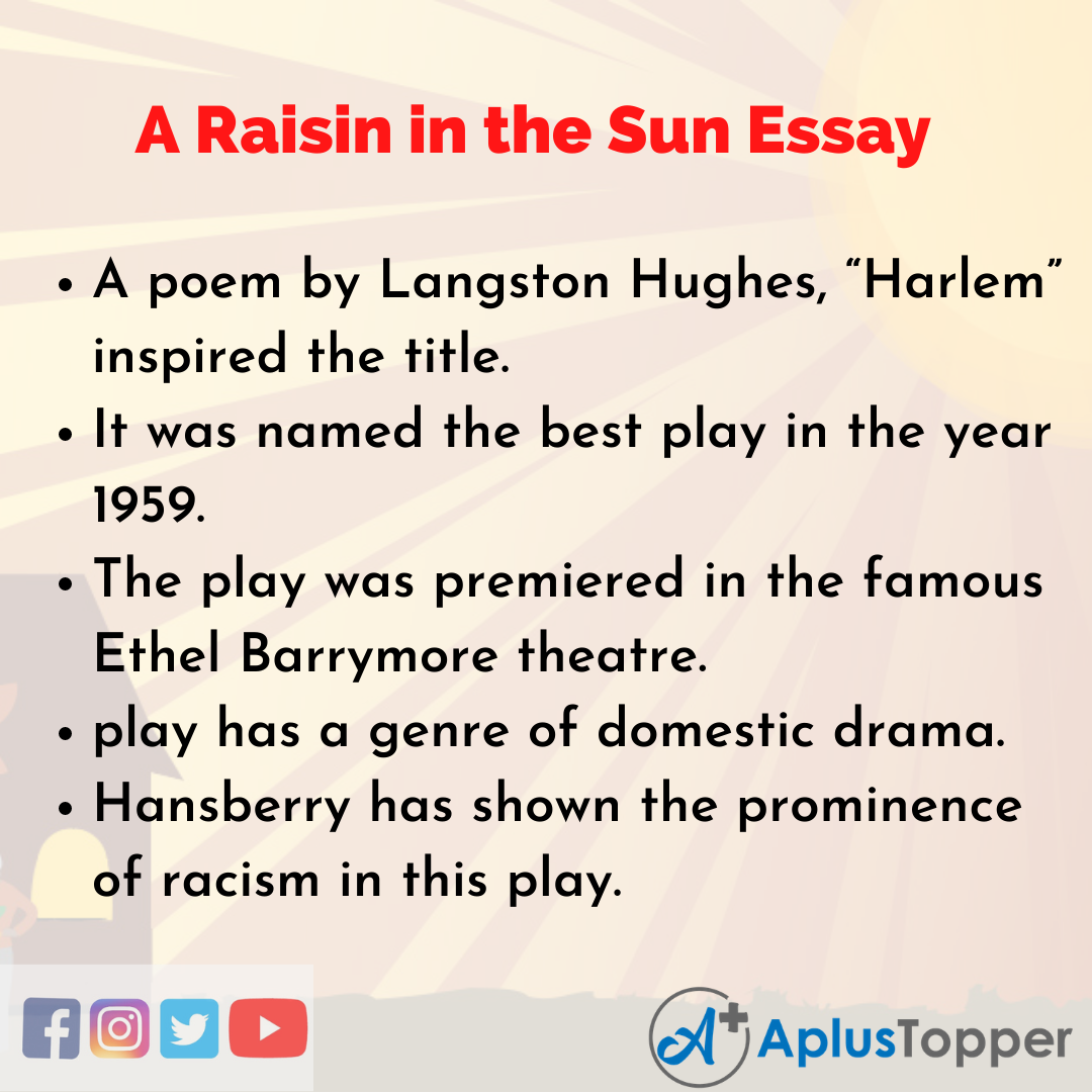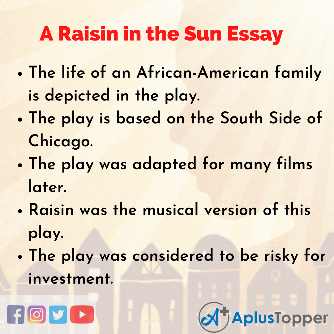 Long and Short Essays on A Raisin in the Sun for Students and Kids in English