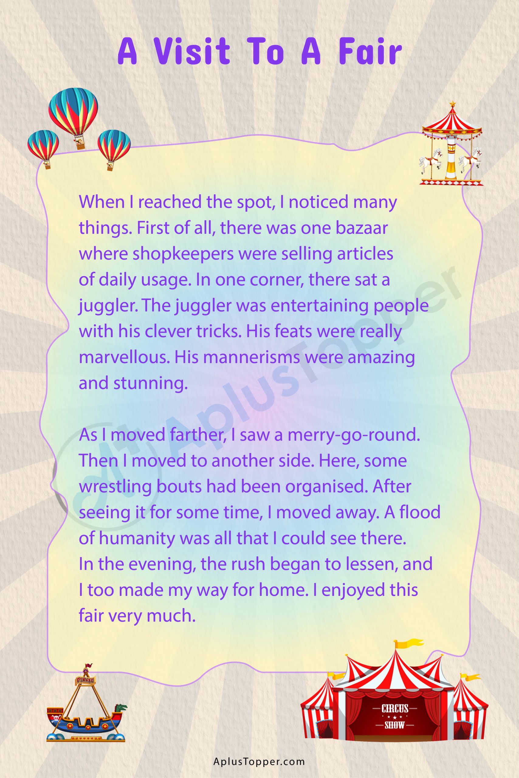 A Visit To A Fair Essay – Given below is a Long and Short Essay on A Visit To A Fair of competitive exams, kids and students belonging to classes 1, 2, 3, 4, 5 6, 7, 8, 9, and 10. A Visit To A Fair essay 100, 150, 200, 250 words in English helps the students with their class assignments, comprehension tasks, and even for competitive examinations.