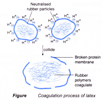 - The rubber polymers start to coagulate by combining together to form large lumps of rubber polymers which then precipitate out of the latex solution.