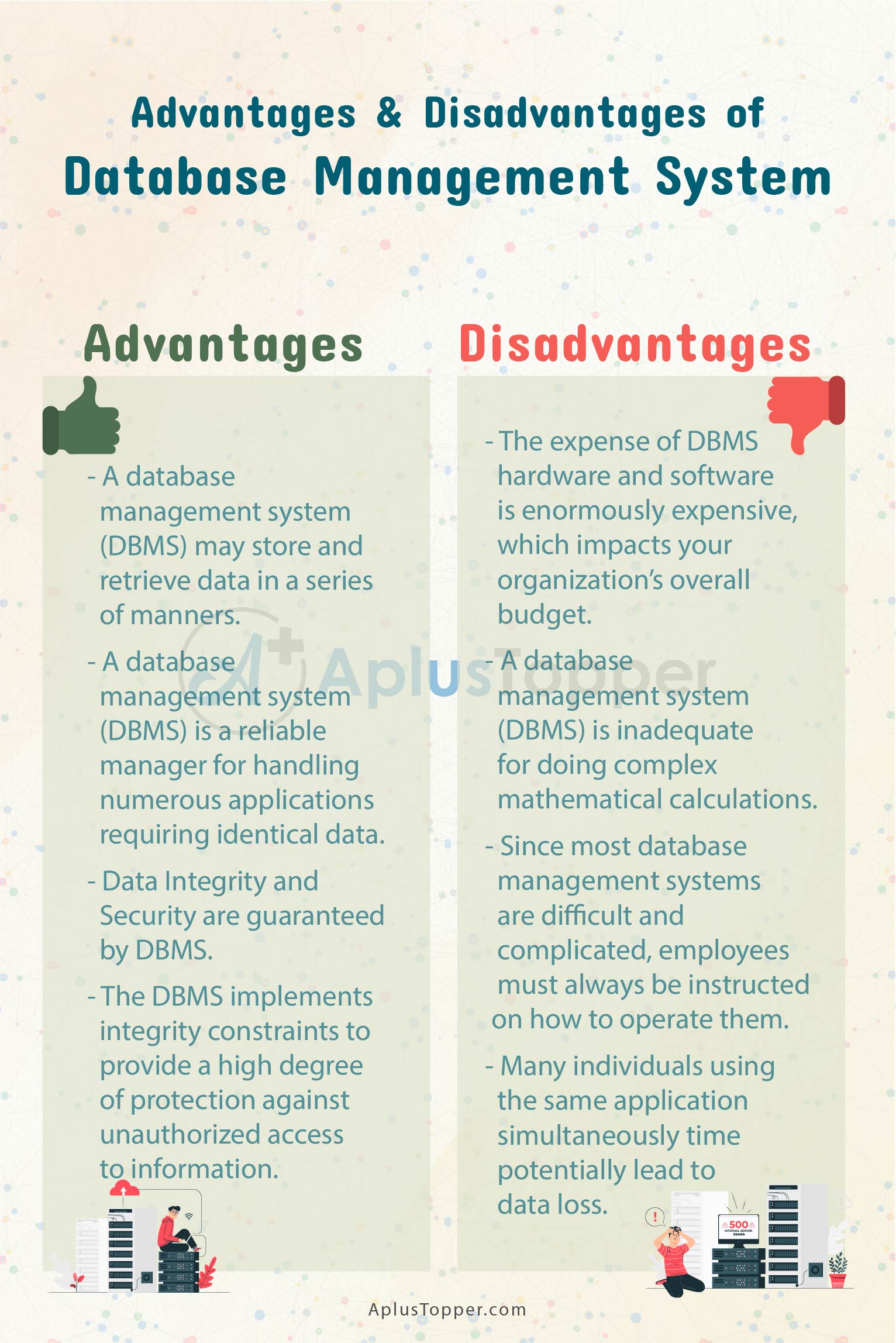 Advantages And Disadvantages Of Dbms In Tabular Form