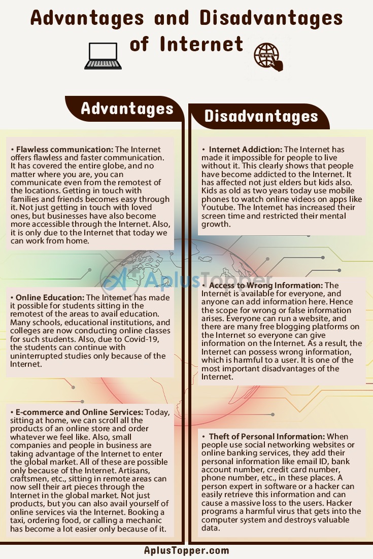 | 1. Access to information from anywhere in the world | 1. Addiction and excessive use |