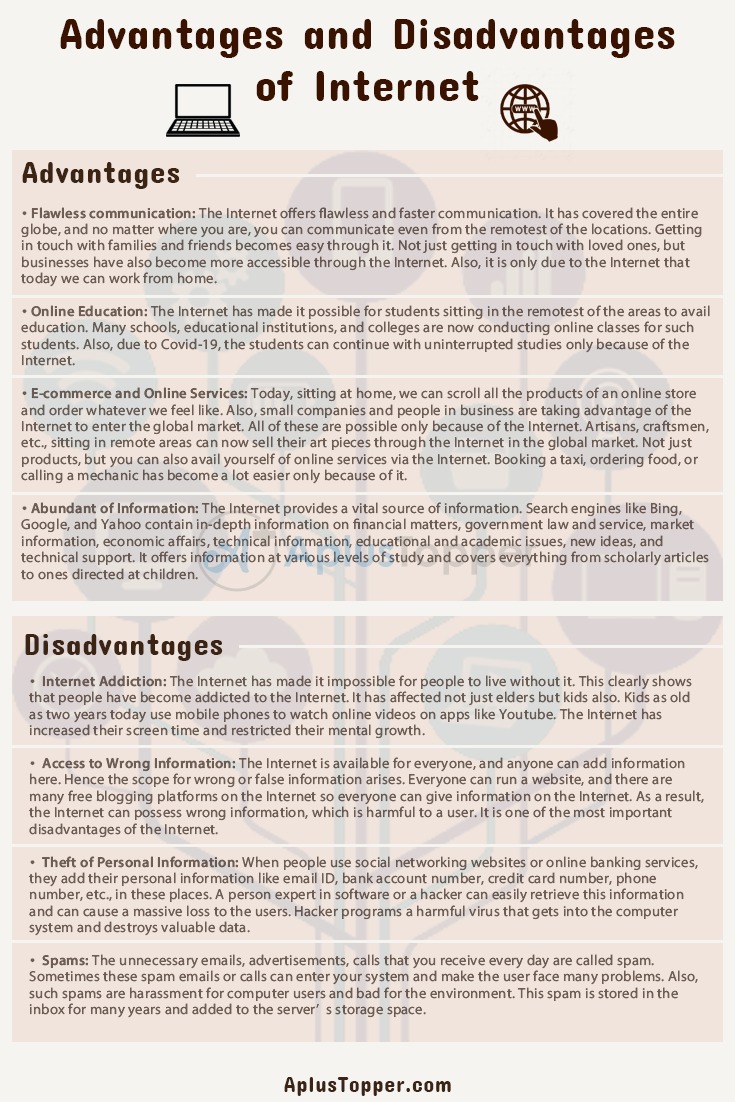 Advantages and Disadvantages of Internet: The Internet is a network system that has completely revolutionized commerce and communication around the globe. The network interconnects the various computer systems around the world and allows them to communicate efficiently. Its popularity grew slowly, but today almost half of the world’s population uses the Internet for day-to-day work. From booking an airline ticket to purchasing a pair of socks, the Internet is everywhere in our daily life. And the growth of some of the major companies like Facebook, Microsoft, Amazon, etc., was impossible without the Internet.