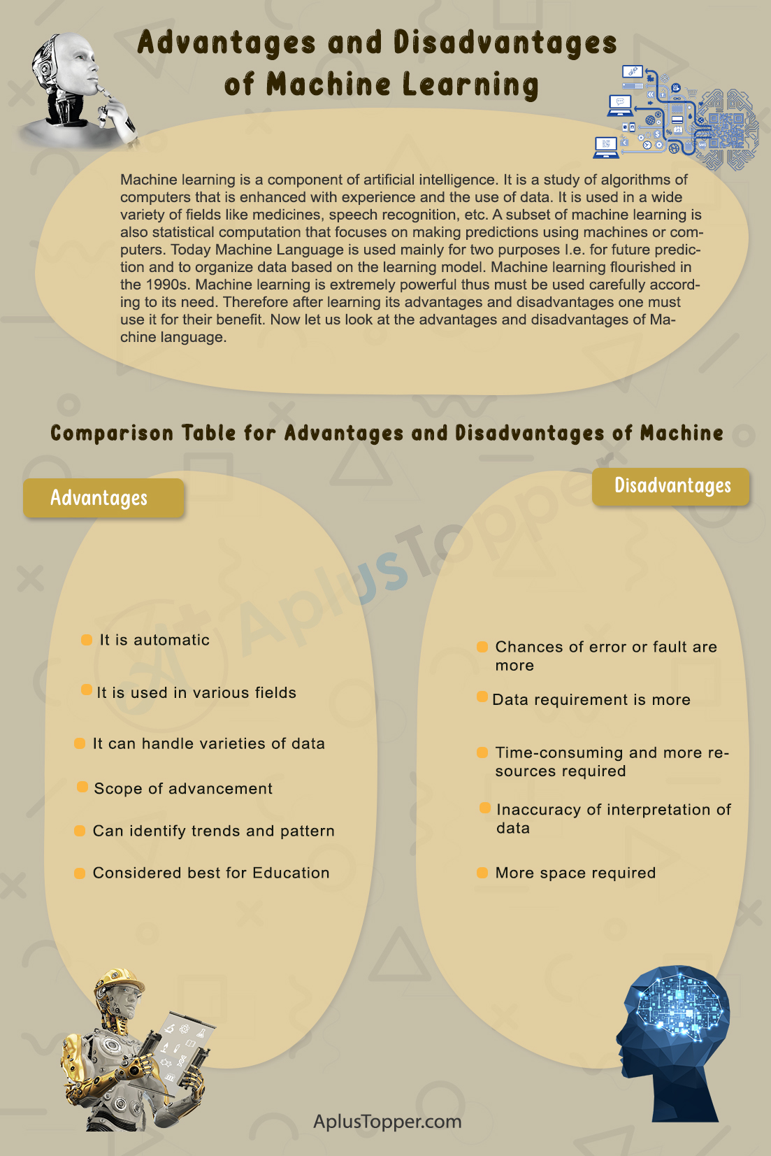 - Comparison Table for Advantages and Disadvantages of Machine Learning