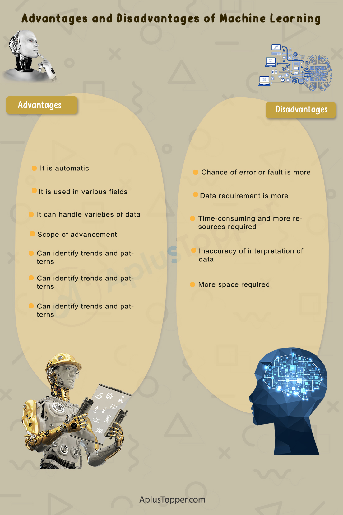 | Advantages of Machine Learning | Disadvantages of Machine Learning |