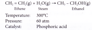 - The ethanol produced is condensed to form a liquid and the unreacted ethene is recycled.