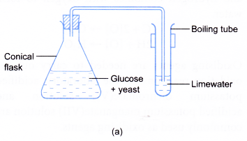 - The conical flask is closed with a stopper connected with a delivery tube. The other end of the delivery tube is dipped into limewater in a boiling tube as shown in Figure (a).
