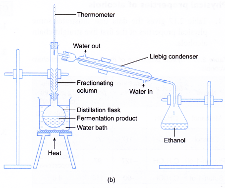 - The apparatus for distillation as shown in Figure (b) is set up.