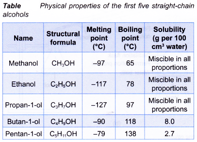 - Table gives the data that illustrates some physical properties of the first five straight-chain alcohols.