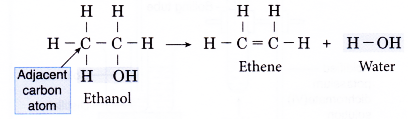 - Notice that the hydroxyl group is removed together with a hydrogen atom from an adjacent carbon atom.