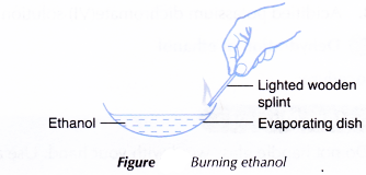 - The combustibility of ethanol is noted. The colour and sootiness of the resulting flame is also noted.