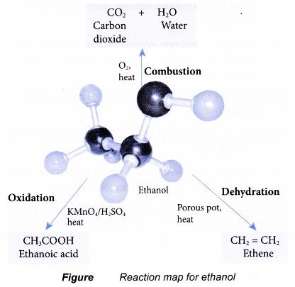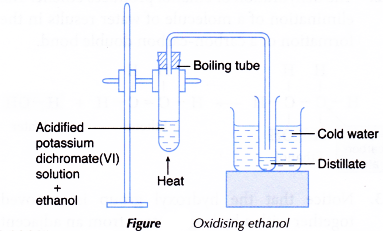 Materials: Ethanol, potassium dichromate(VI) solution, potassium manganate(VII) solution, concentrated sulphuric acid, bromine water, blue litmus paper, glass wool, ice, unglazed porcelain chips, wooden splint, water.