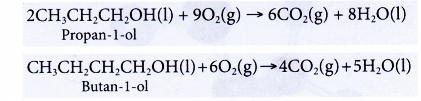 - Alcohols undergo complete combustion when heated in excess oxygen to produce carbon dioxide and water.