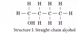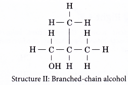 (b) the different locations of the hydroxyl group - Structures I and II are two examples of how branching of the carbon chain occurs in alcohol molecules.