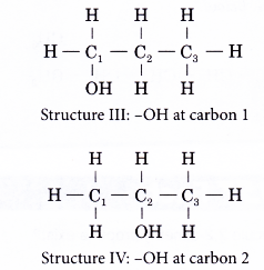 - The positions of the hydroxyl group, -OH are different in structures III and IV even though they have the same carbon skeleton.
