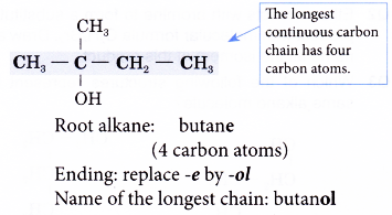 Step 2: Name this longest chain by substituting the ending -ol for the -e of the corresponding alkane.