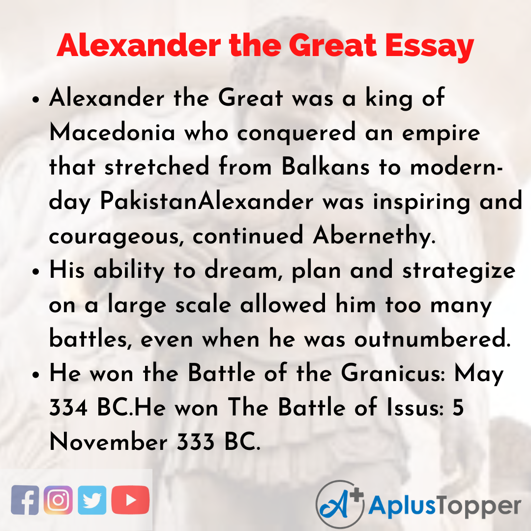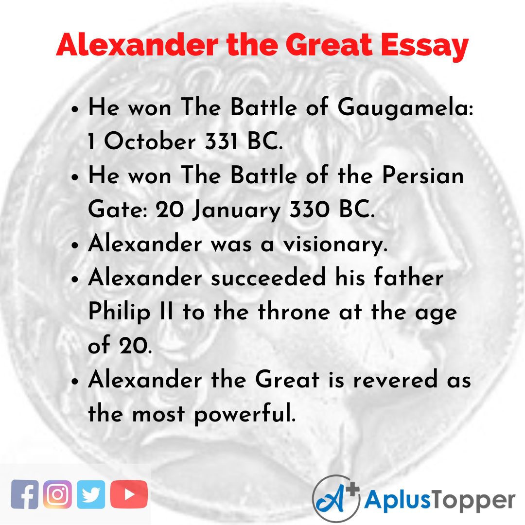 Short Essay on Alexander the Great is usually given to classes 1, 2, 3, 4, 5, and 6.