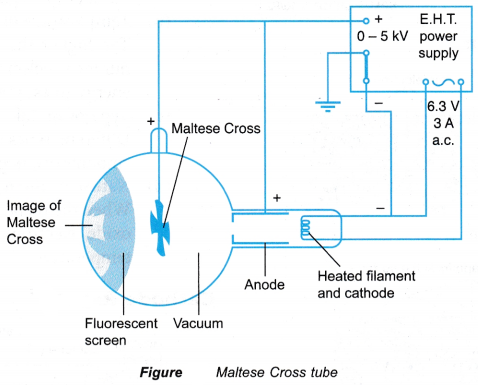 The properties of the cathode rays can be studied using an apparatus such as the Maltese Cross tube as shown in Figure.