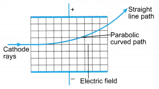 - The path of the cathode rays in an electric field is the shape of a parabola as shown in Figure. This shows that cathode rays are negatively charged.