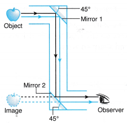 - Light from the object is reflected through 90° by each mirror before entering the eye of an observer.