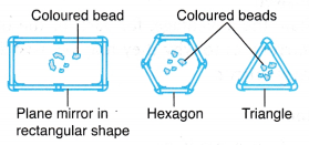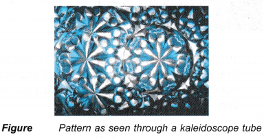 - Pieces of coloured beads or pebbles are placed inside the tube. The observer looks in one end and light enters the other end, reflecting off the mirrors.