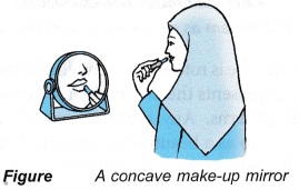 - Concave mirrors with long focal length can be used as shaving mirrors or make-up mirrors as they form magnified and upright images.