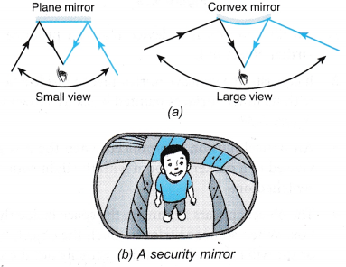 - The wing and rear-view mirrors of a car are made of a convex and a plane mirror respectively. The two wing mirrors enable the driver to see objects on both sides of the car. The rear-view mirror enables the driver to see things behind the car.