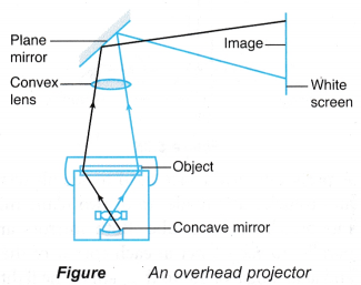 - An overhead projector as in figure uses a concave mirror to reflect light from the object to the screen.