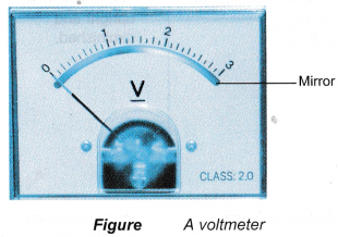 - Meters like ammeters and voltmeters use a mirror to avoid parallax error. The reading is taken from a position such that the image of the pointer is directly under the pointer.