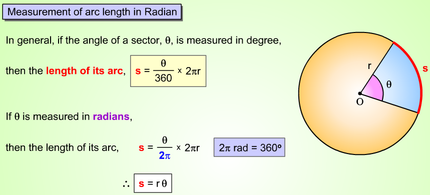 The length of an arc is simply the length of its “portion” of the circumference. Actually, the circumference itself can be considered an arc length.