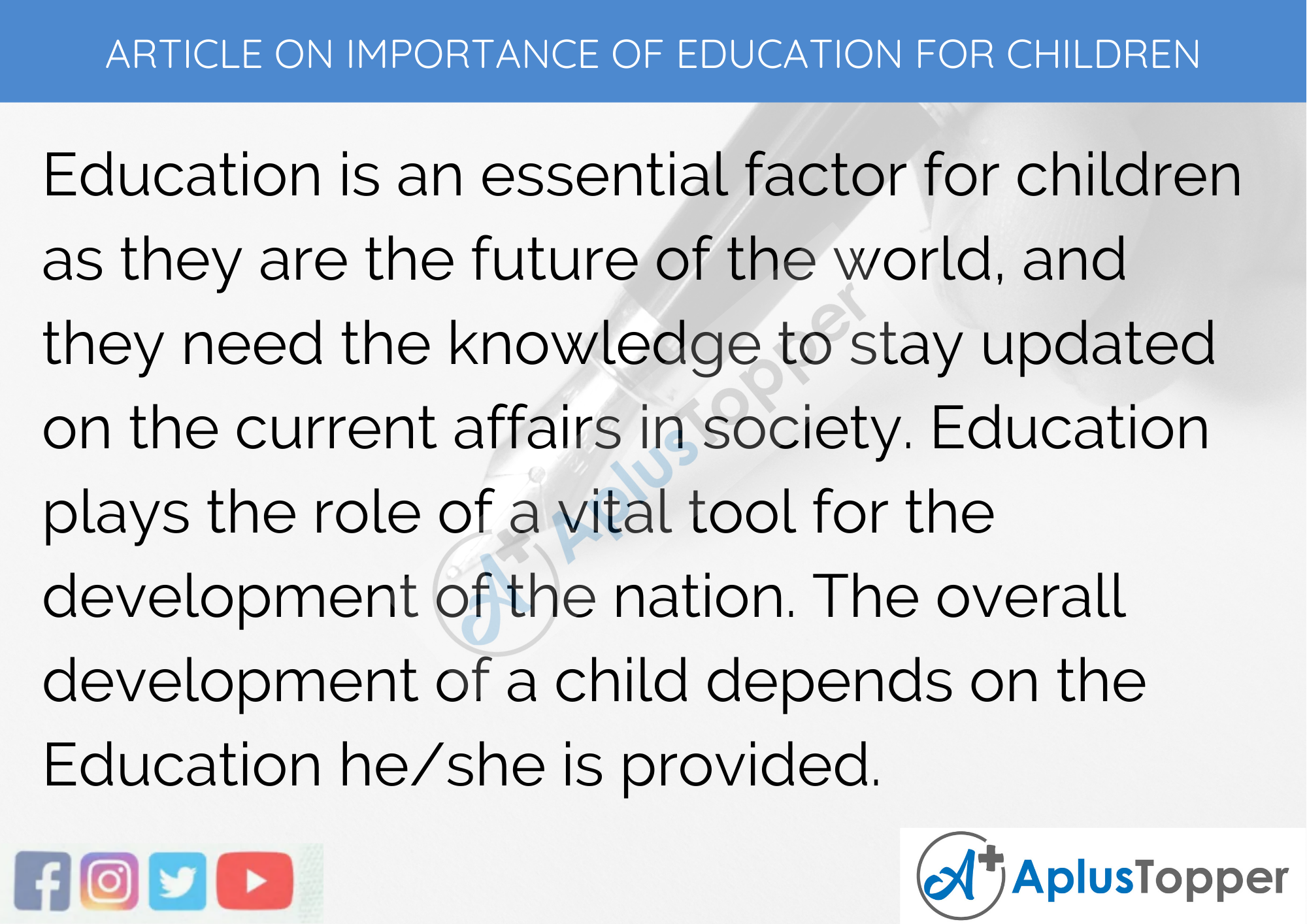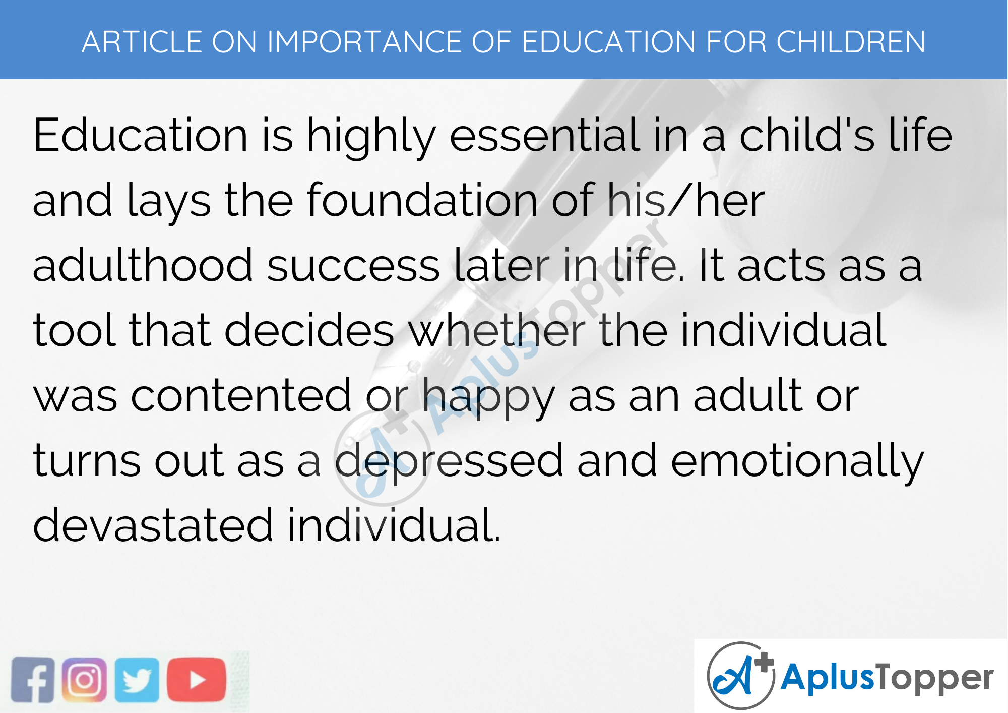 Given below is a Long Article on Importance of Education for Children is helpful to the students of classes 6,7,8,9, and 10. The Importance of Education for Children article helps the students with their class assignments, comprehension tasks, article writing, debate, and even competitive examinations.