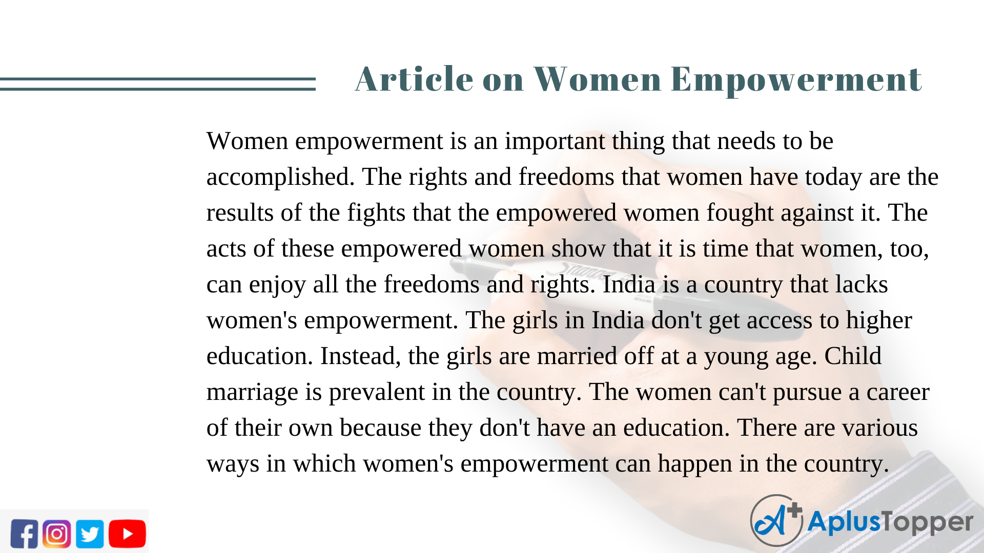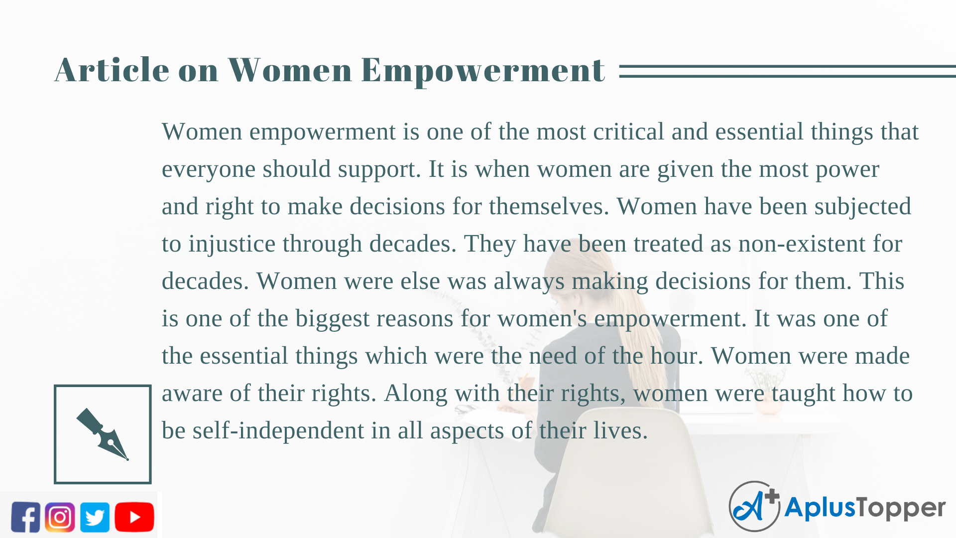 Long and Short Articles on Women Empowerment for Students and Kids in English