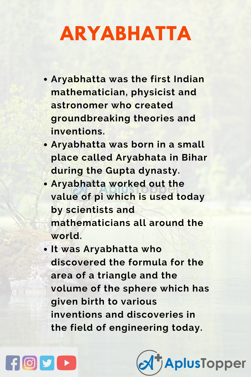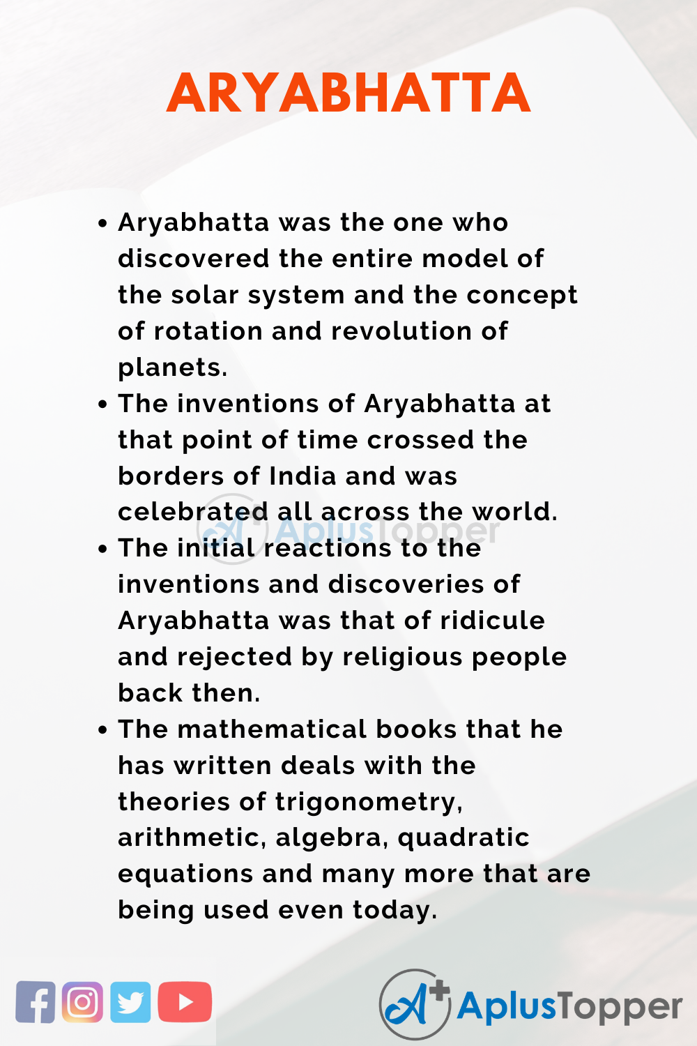 Aryabhatta Essay is usually given to classes 7, 8, 9, and 10.