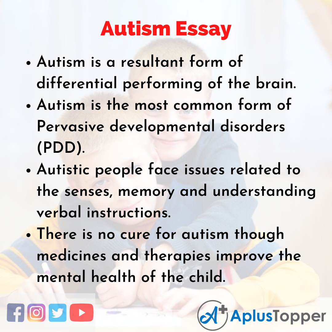 Long Essay on Autism is usually given to classes 7, 8, 9, and 10.