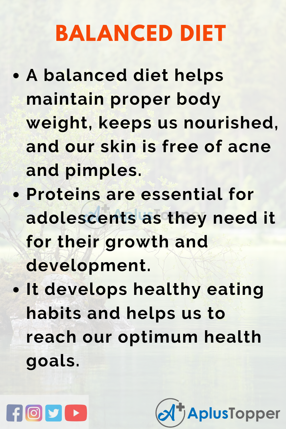 - A balanced diet helps maintain proper body weight, keeps us nourished, and our skin is free of acne and pimples.