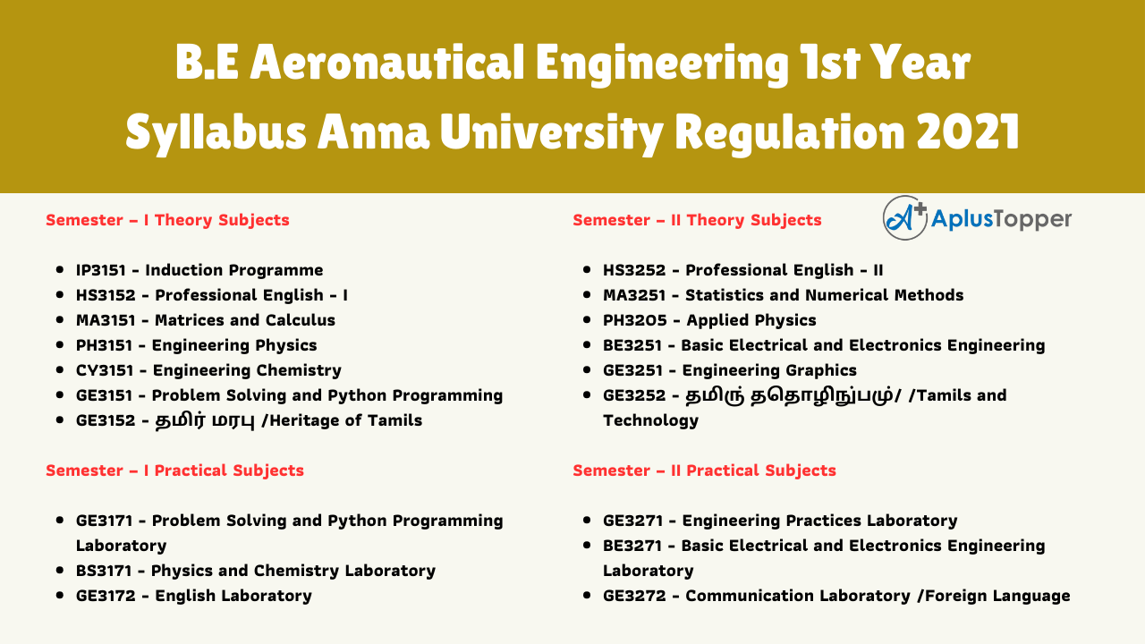 B.E Aeronautical Engineering 1st Year Syllabus Anna University Regulation 2021