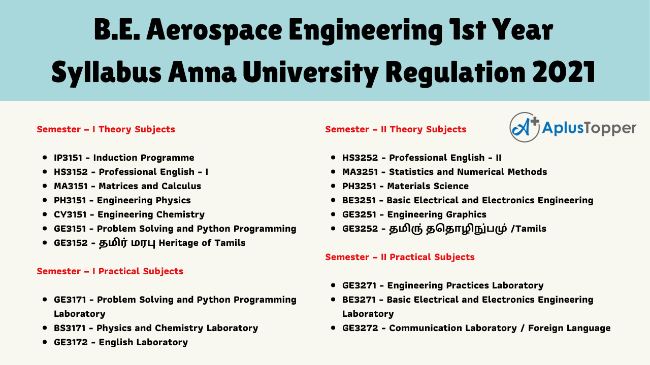 B.E. Aerospace Engineering 1st Year Syllabus Anna University Regulation 2021