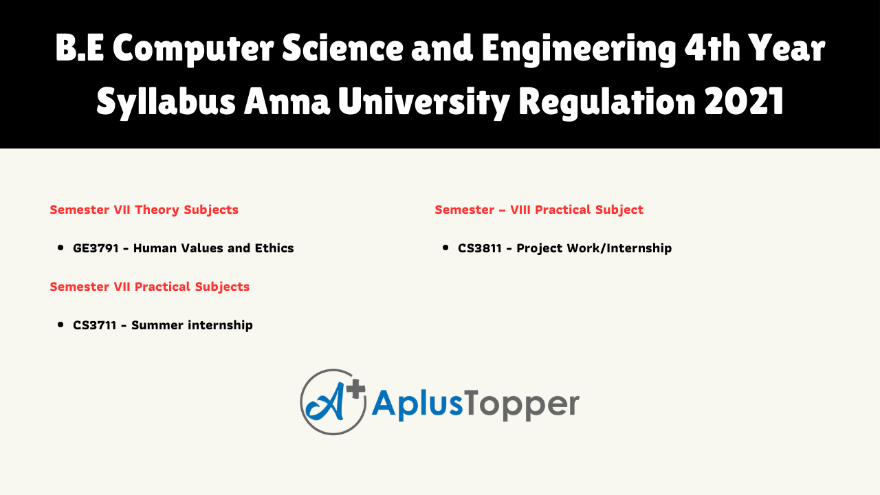 B.E Computer Science and Engineering 4th Year Syllabus Anna University Regulation 2021