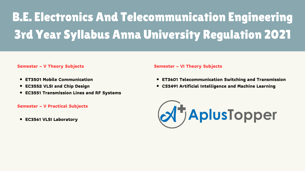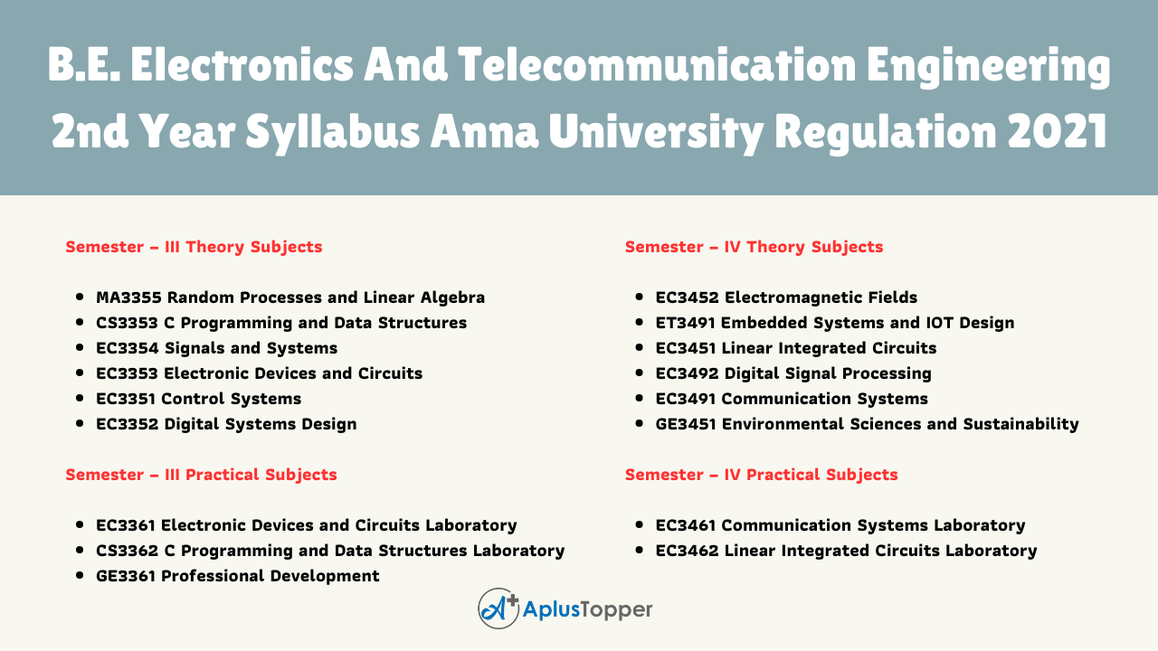 In this article, we aim to provide the syllabus of B.E Electronics and Telecommunication Engineering Syllabus Anna University Regulation 2021. Many of the students are confused about getting the proper syllabus for preparation for exams. To avoid that confusion, we try to provide the complete four-year degree undergraduate course syllabus relevant to affiliated institutions in one place.