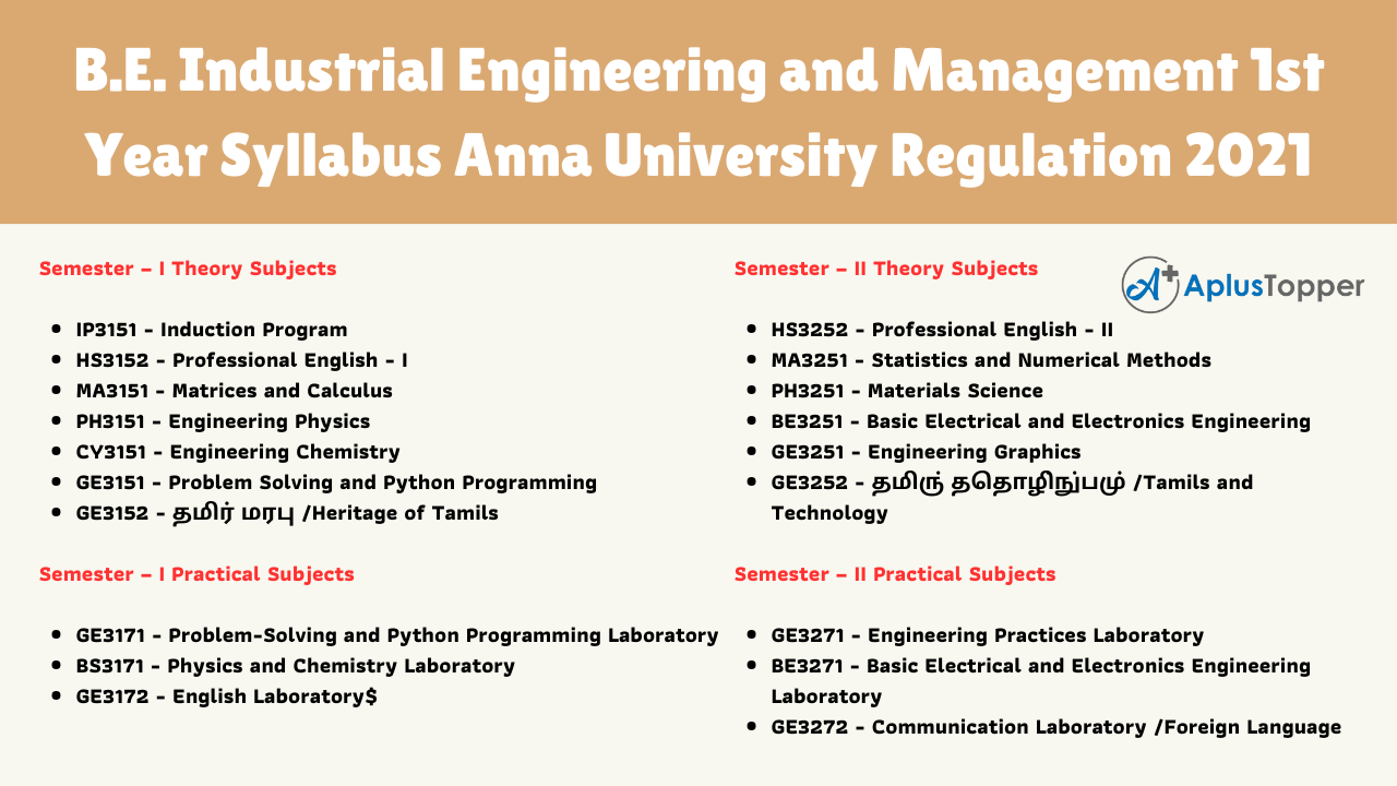 B.E. Industrial Engineering and Management 1st Year Syllabus Anna University Regulation 2021
