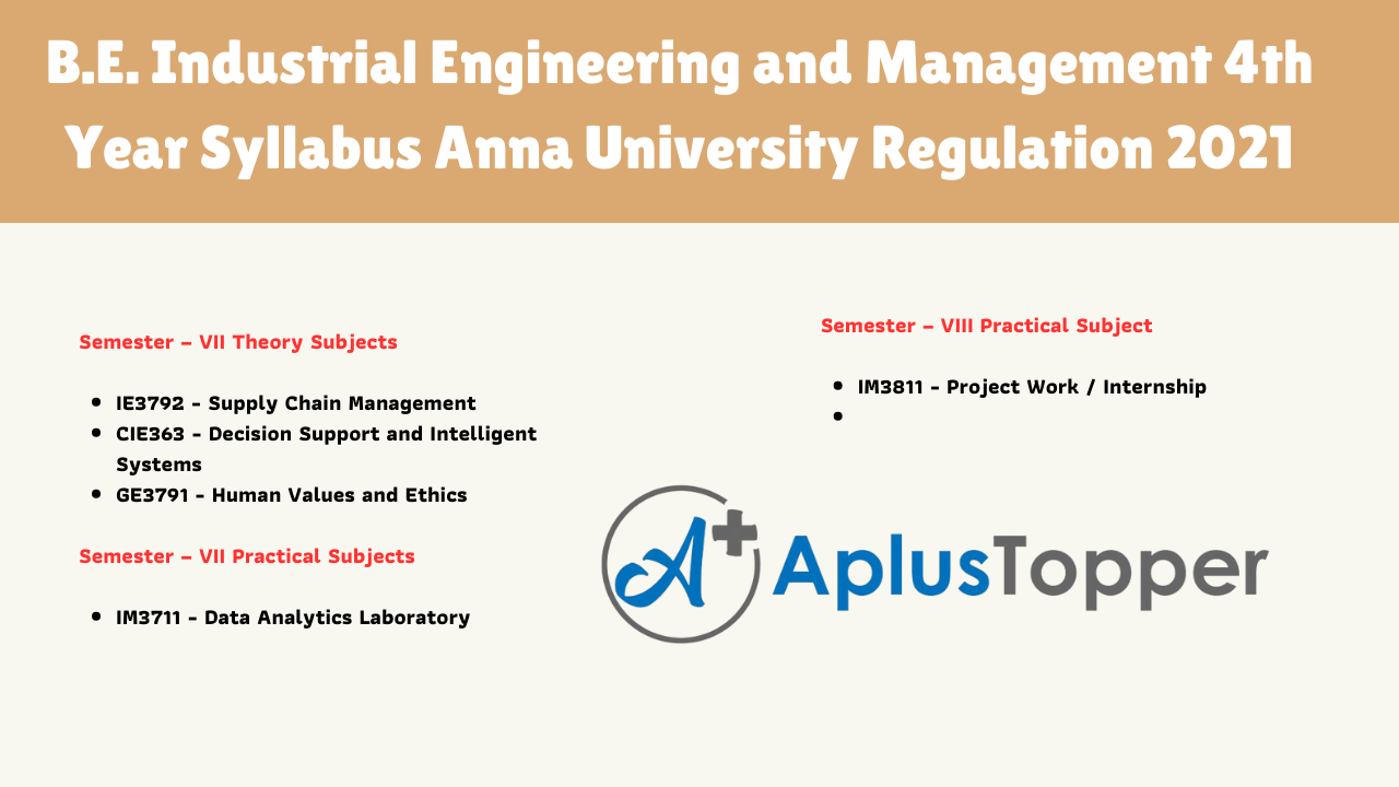 B.E Industrial Engineering and Management course based on Regulation 2021 is offered by Anna University. In this article, we would like to discuss the syllabus of B.E Industrial Engineering and Management.